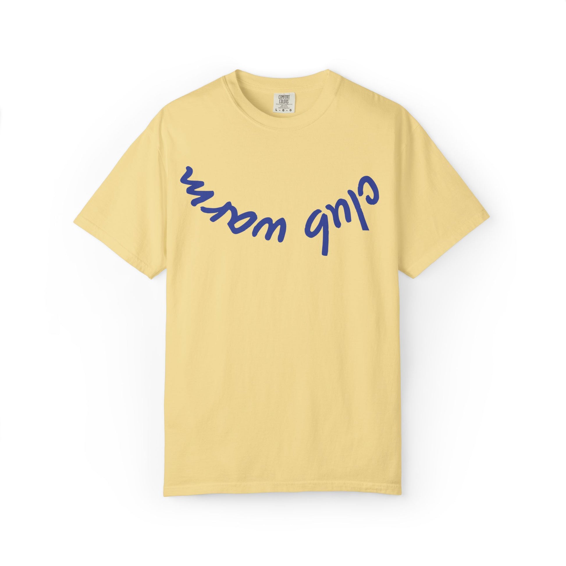 designed for every latitude, from a winter morning in switzerland to a sunset in the bahamas. our fan-favorite, ethically sourced comfort colors® cotton wears in softer with each trip. made to last with reinforced double-needle stitching on all seams. the cobalt “club warm” mark curves upside-down in handwritten script. here for the heat or the slow burn. available in off-white ivory, butter yellow, and faded black pepper.
