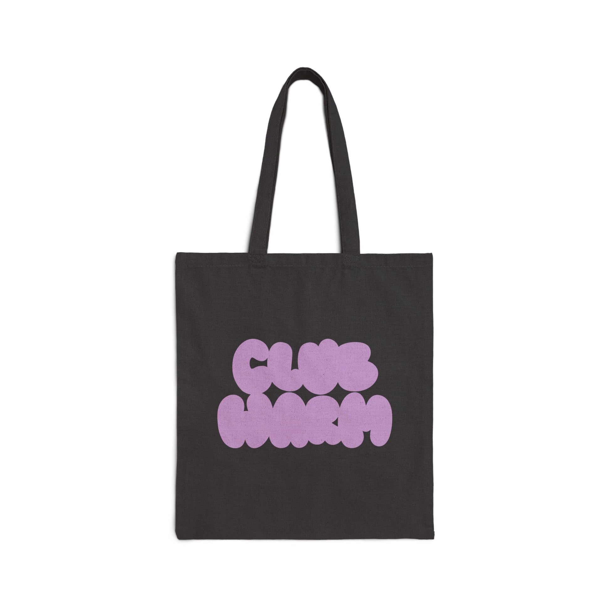 designed for farmers market mornings, bookstore afternoons, late-night corner runs, and everything in between. heavyweight black cotton canvas, printed on both sides in bubblegum pink/lavender ink. one side reads “warm is a feeling,” the other carries the club warm mark in our signature cloud-gummy font. made to last with reinforced handles and flat corners, this tote carries softness even when it’s full.